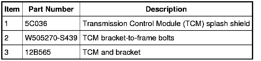3. Remove the Transmission Control Module (TCM) and bracket from the frame.