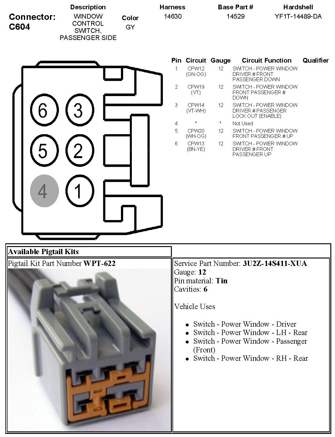 Window Control Switch, Passenger Side