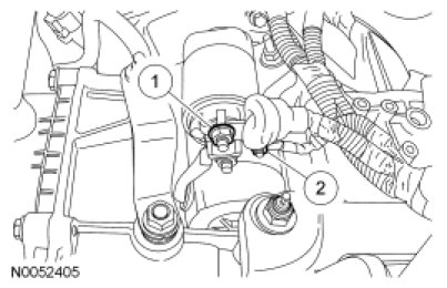 27. Install the wiring harness fastener on the starter motor studbolt.