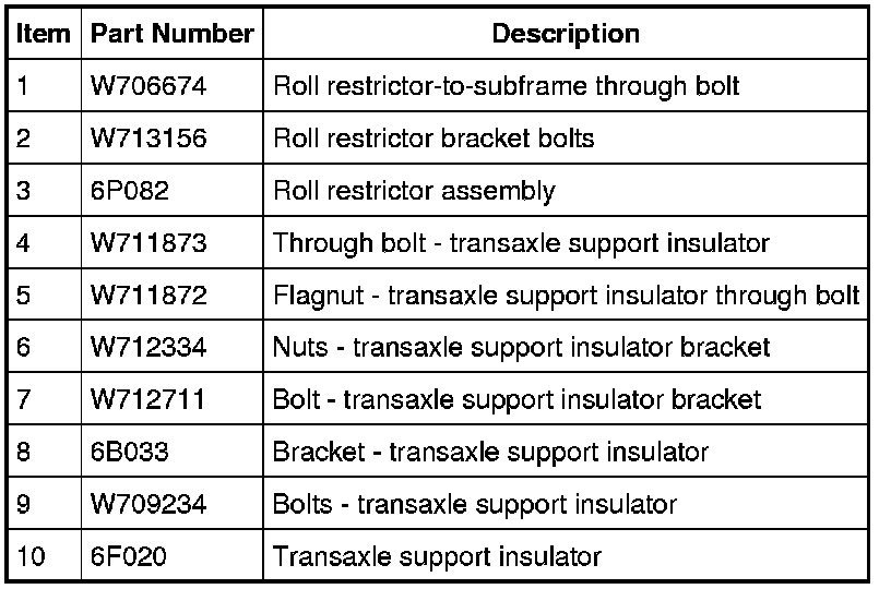 4. Loosen the engine roll restrictor-to-subframe through bolt.