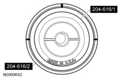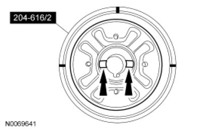 2. NOTE: Make sure the alignment marks are properly aligned on both the Rear Drive Unit (RDU) Bushing (70 mm) Remover/Installer 204-616/1 and Rear Drive Unit (RDU) Bushing (70 mm) Remover/Installer 204-616/2 and the anti-rotation tabs are properly seated in the Rear Drive Unit (RDU) Bushing (70 mm) Remover/Installer 204-616.