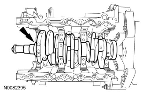 - Move the crankshaft to the front of the cylinder block. Note and record the crankshaft end play.