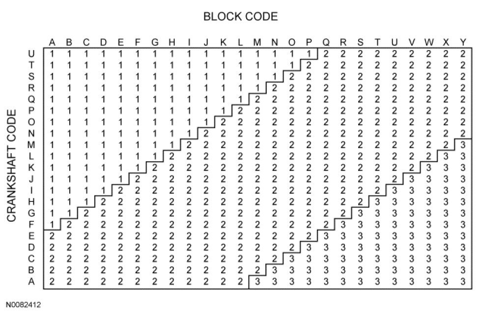 - If the block code is *BM*QS* and the crankshaft code is *OL*PO*, Main No. 1 should be built with grade 1 bearings, as determined by the intersection of the B block column and the O crankshaft row on the chart. Mains No. 2, No. 3 and No. 4 should all be grade 2.