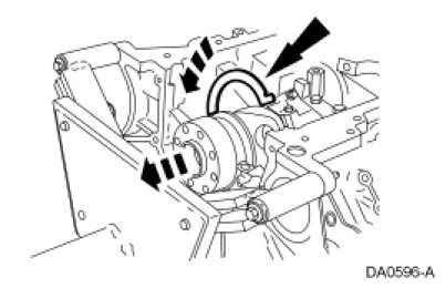 - Position the crankshaft to the rear of the cylinder block.