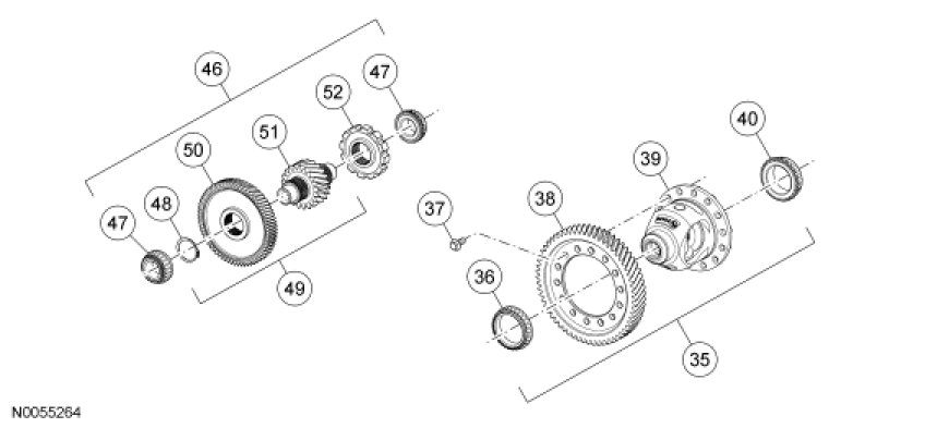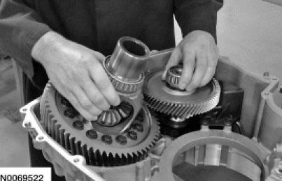 29. Rotate the transfer shaft and the differential several times to seat the bearings.