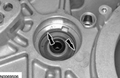 3. Inspect the transfer shaft fluid dam to be sure it is seated evenly into the transaxle case.