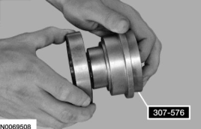 12. Lubricate a new manual shaft seal and the Manual Lever Seal Installer 307-581 with petroleum jelly and install the seal on the Manual Lever Seal Installer 307-581.