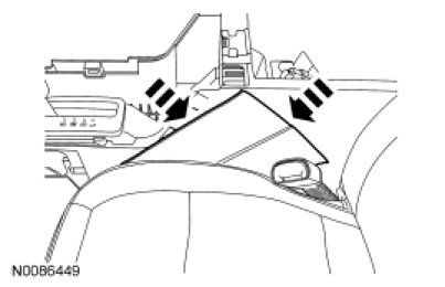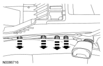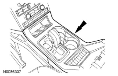 18. NOTE: When installing the front of the center console trim panel, feel behind the panel to guide the panel into the retainer.