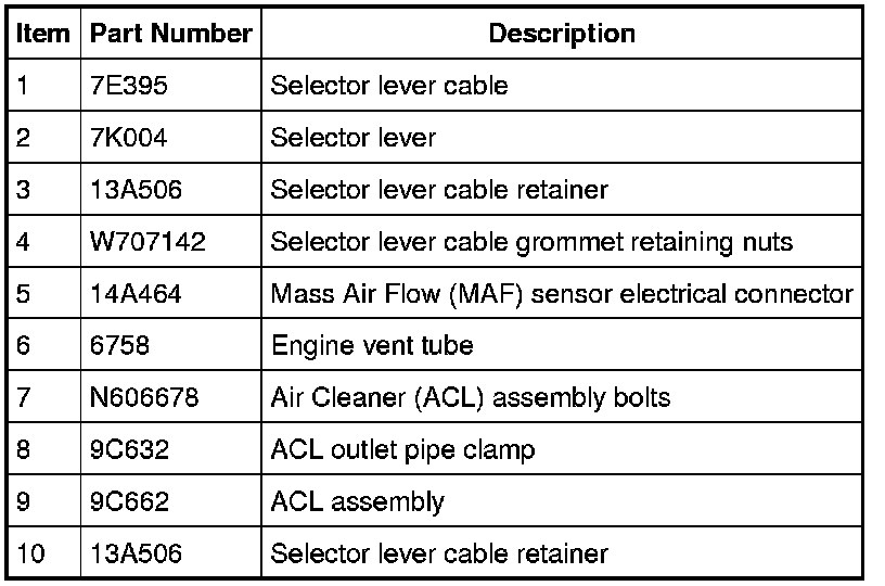 Disconnect the selector lever cable retainer from the floor and route the cable out from under the heater housing.