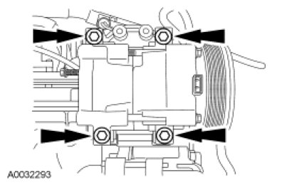 7. Remove the 4 bolts and the A/C compressor.