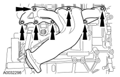 - Discard the 7 nuts and the exhaust manifold gasket.