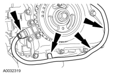 2. Using the Flywheel Locking Tool, remove the 6 bolts and the flexplate or flywheel.
