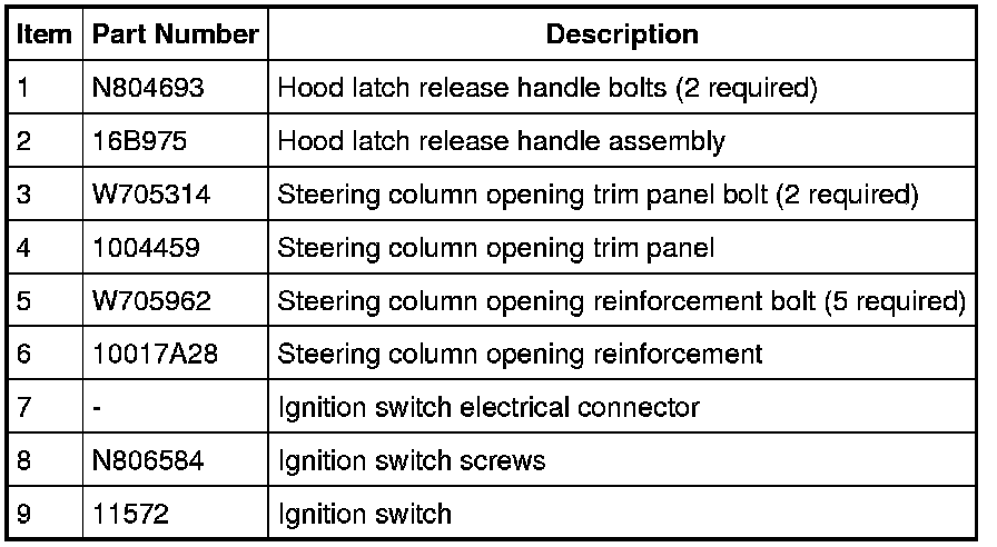 3. Remove the 5 steering column opening reinforcement bolts and the reinforcement.