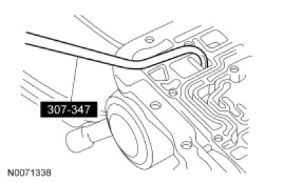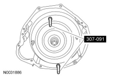 3. WARNING: Secure the torque converter in the transmission during removal or installation. The torque converter is heavy and may result in injury if it falls out of the transmission. Failure to follow this instruction may result in serious personal injury.
