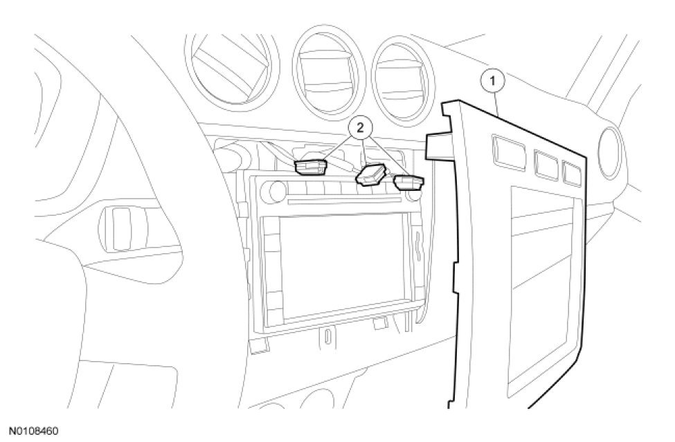 1. Using a suitable tool (such as a flat-bladed trim removal tool), remove the instrument panel center finish panel by prying it straight rearward.