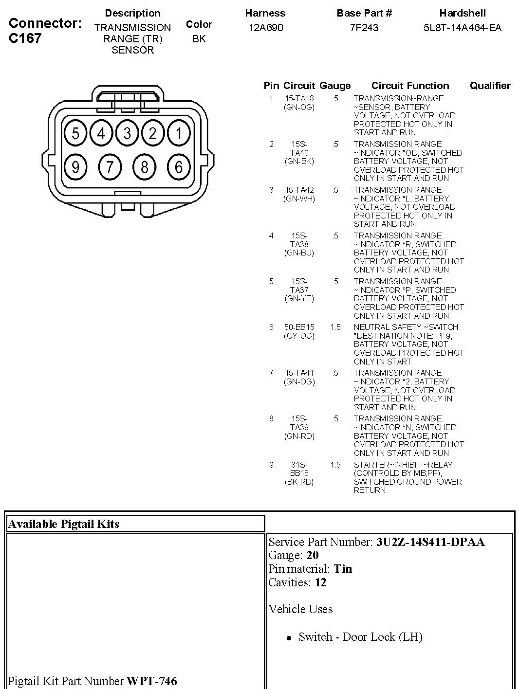 Transmission Position Sensor/Switch: Diagrams