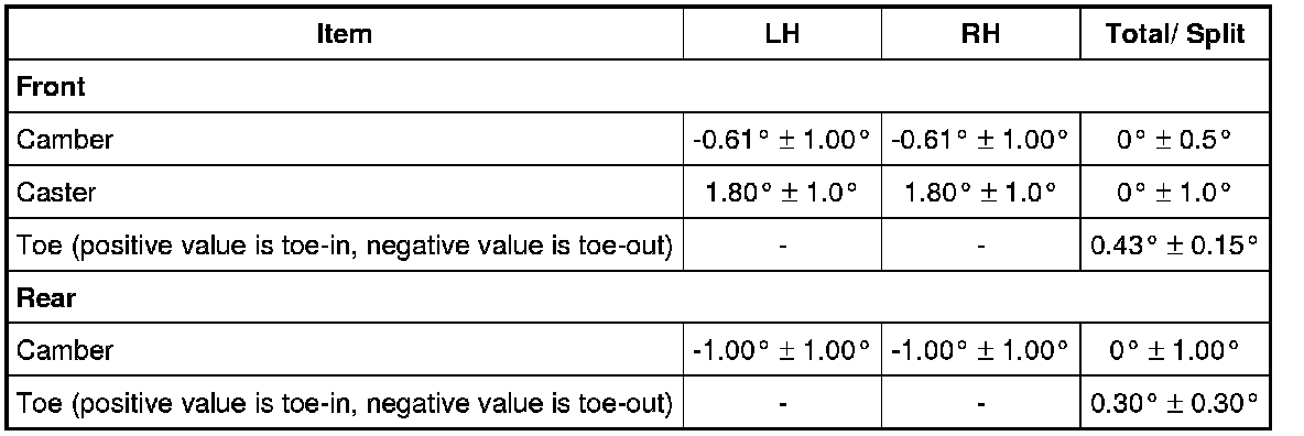 Alignment Specifications (at curb weight)
