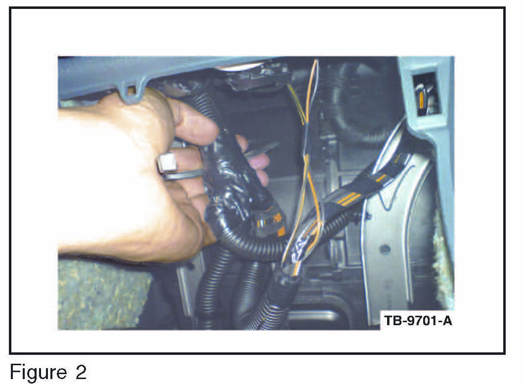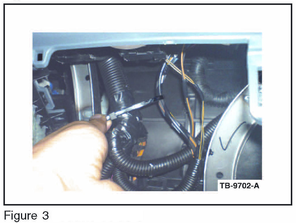 8. Pull the climate control blower motor wiring away from the IP bracket and secure to the large bundle of wire. (Figures 2 and 3)