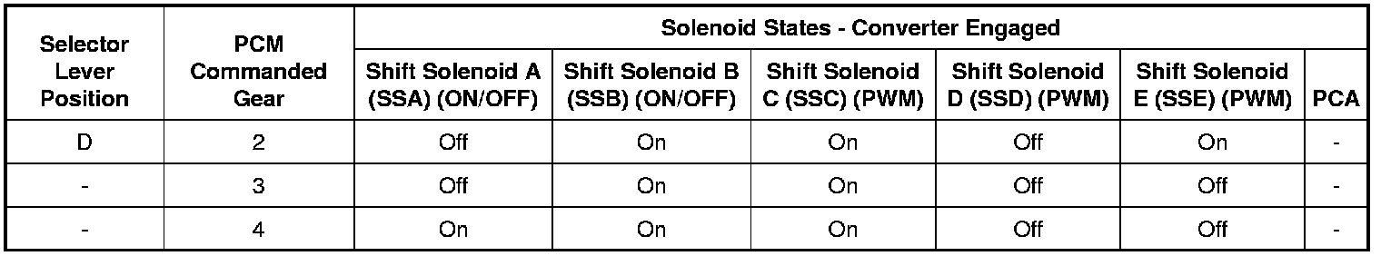 Solenoid Operation Chart - Converter Engaged