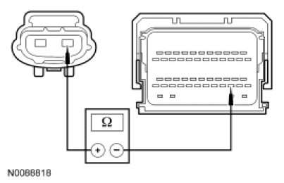 - Measure the resistance between OSS sensor C193-1, circuit 8-RJ29 (WH/BU) and PCM C175T-4, circuit 8-RJ29 (WH/BU).