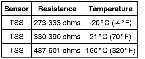 - For TSS sensor, measure the resistance between TSS sensor connector pin 1, component side and ground.