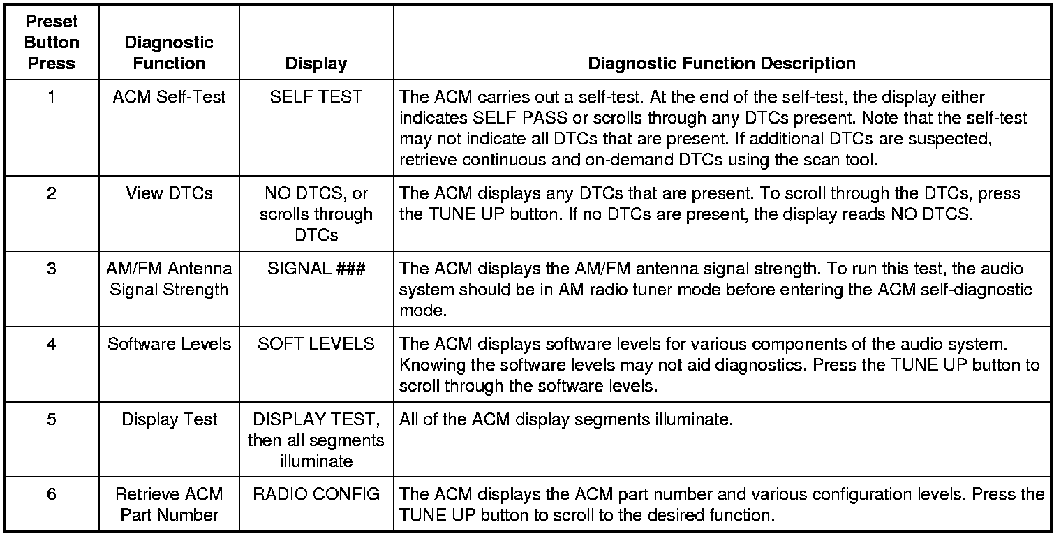 Audio Control Module (ACM) Self-Diagnostic Mode