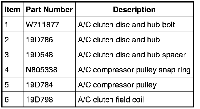 1. Visually inspect the A/C clutch disc and hub, A/C compressor pulley and A/C clutch field coil for damage.