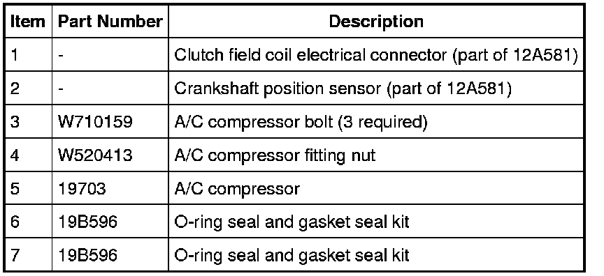 NOTE: A new A/C compressor may come equipped with an A/C clutch disc and hub, A/C compressor pulley and A/C clutch field coil already installed. If these components are not pre-installed, it will be necessary to transfer these parts from the old A/C compressor to the new compressor prior to installations of the A/C compressor if suitable for reuse.