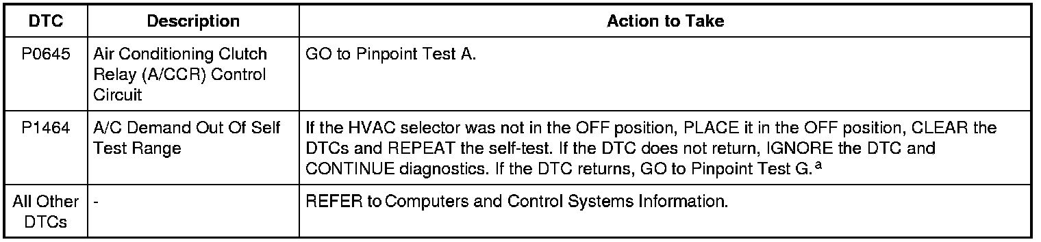 a PCM DTC P1464 will set if the function selector is in PANEL with A/C button pressed, DEFROST or MAX A/C mode when the on-demand self test is being run.