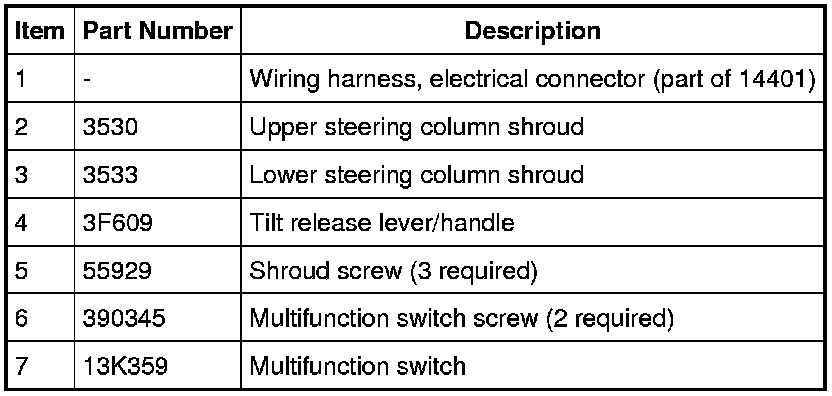 4. Remove the 3 screws and the upper and lower steering column shrouds.
