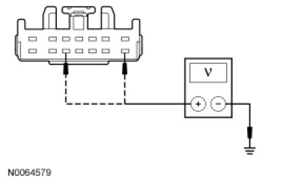 - For vehicles equipped with a telematics module, measure the voltage between the TBC module C2142-8, circuit VB-A (GY/RD), harness side and ground; and between the TBC module C2142-12, circuit IGRUN-A (WH/BN), harness side and ground.