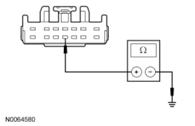 - For vehicles equipped with a telematics module, measure the resistance between the TBC module C2124-11, circuit GND-A (BK/GY), harness side and ground.