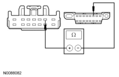 - For vehicles equipped with a telematics module, measure the resistance between the TBC module C2142-3, circuit VDB05 (WH), harness side and the DLC C251-14, circuit HSC2-A (WH), harness side.
