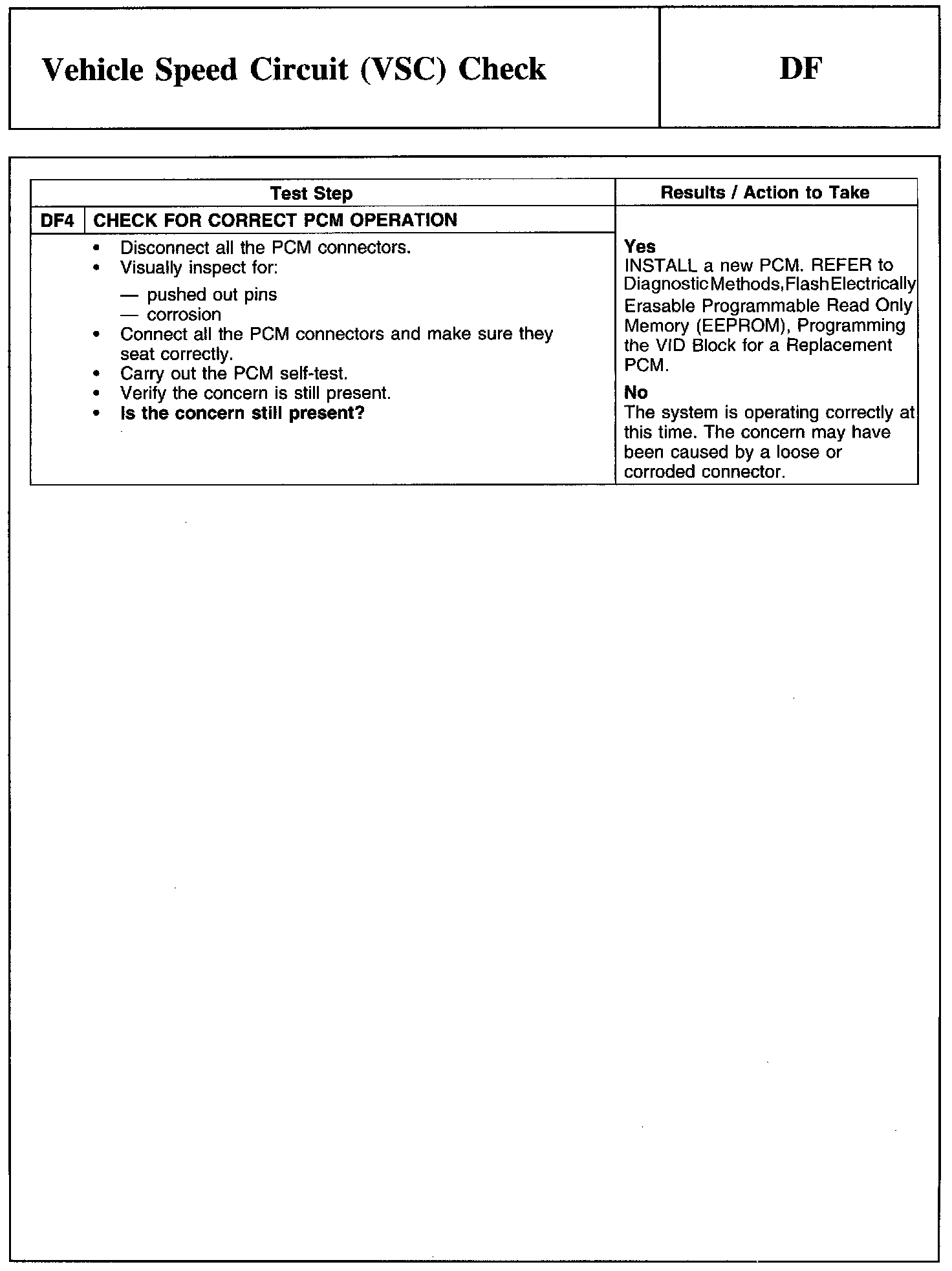 Test DF: Vehicle Speed Circuit (VSC) Check