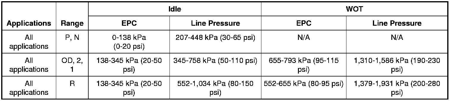 Line Pressure Chart