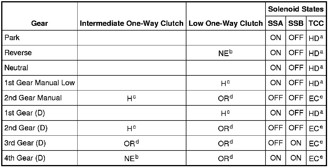 Band and Clutch Application Chart A