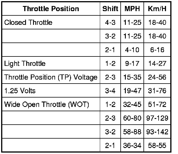 NOTE: Shift speed ranges are approximate for all applications. For specific applications (engine, axle ratio and application), refer to the Automatic Transmission Specification booklet. Do not exceed local speed laws.
