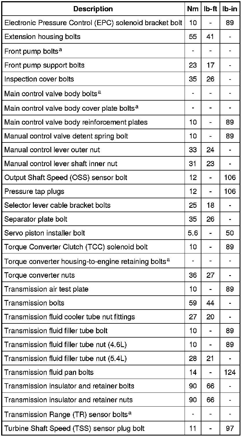 Torque Specifications