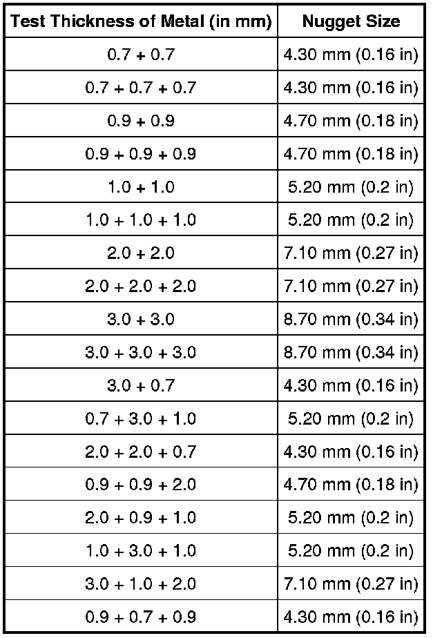 Weld Nugget Chart