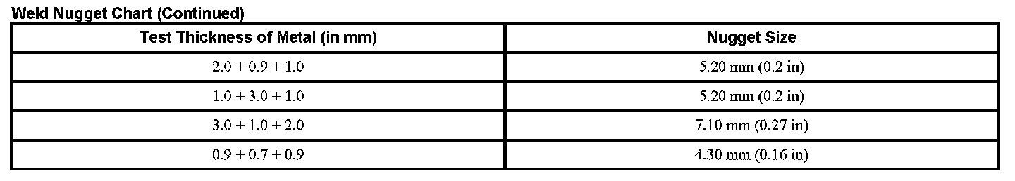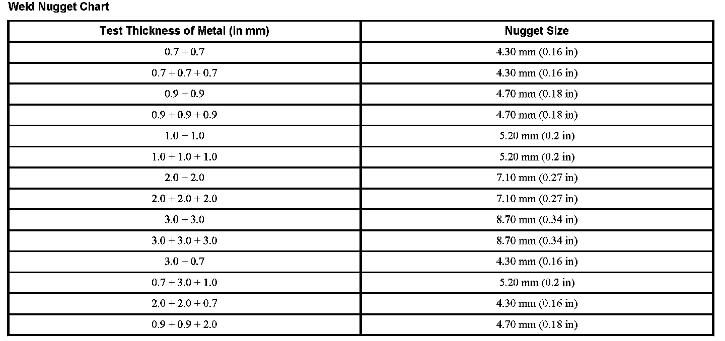 Weld Nugget Chart (Part 2):