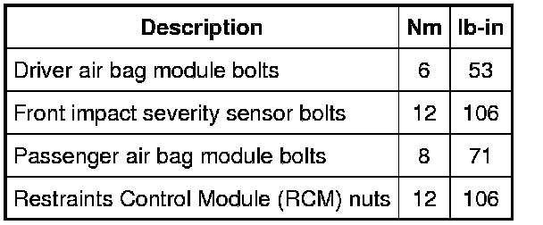 Air Bag Systems: Specifications