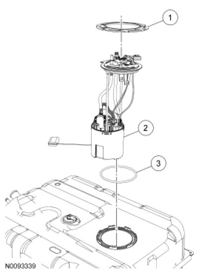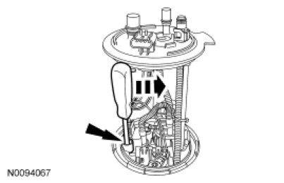 5. NOTE: If the FP does not clear the FP mounting flange on the fuel tank, the use of a screwdriver may be necessary.