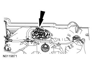 4. Using the Fuel Tank Sender Unit Wrench, remove the FP module lock ring.