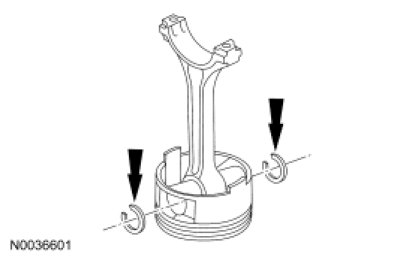 4. Install the piston pin retaining clips in the piston.