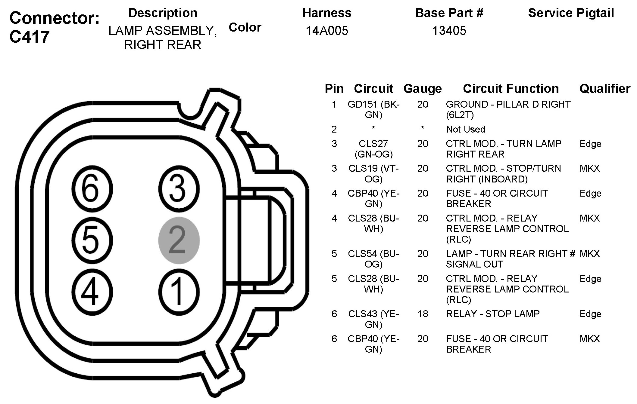 C417 Lamp Assembly, Right Rear