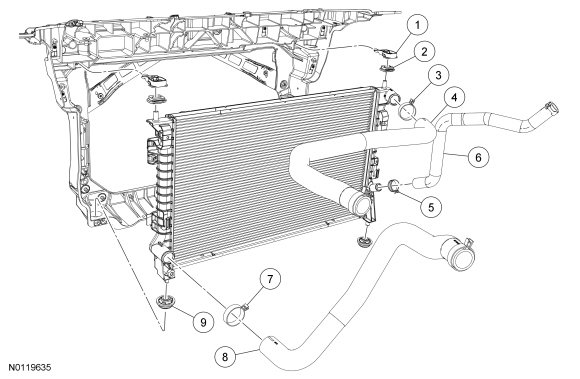 2. Remove the cooling fan motor and shroud. For additional information, refer to Cooling Fan Motor and Shroud Service and Repair.