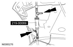 Disconnect the high-pressure and low-pressure service valves and remove the R-134a Loop/Add On Injector Kit-Set from the vehicle.