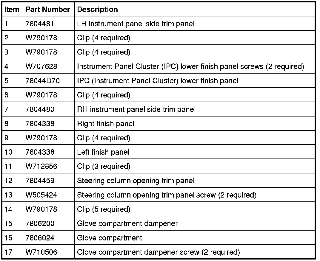 MKX Instrument Panel Fasteners