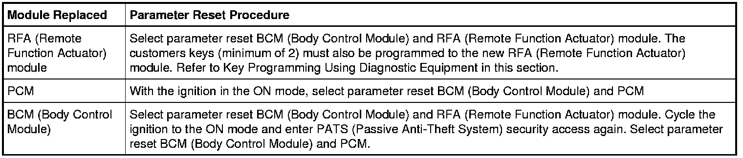 NOTE: There are 2 parameter reset procedures in the scan tool. Select the appropriate procedure depending upon which module was replaced.