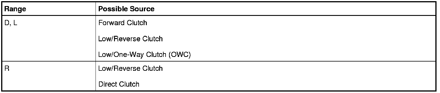 In each of the following ranges D, L and R, press the accelerator pedal to the floor and hold it just long enough to let the engine get to Wide Open Throttle (WOT). While making this test, do not hold the throttle open for more than 5 seconds at a time.